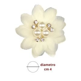 Applicazione da cucire fiorellino in cotone e organza con perla