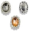 L’ applicazione a forma di ventaglio è realizzata con pietre singole a chicco di riso e pietre strass di color crystal, con pietra colorata centrale.