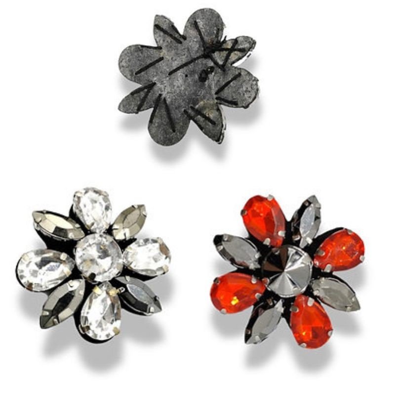 Applicazione raffigurante un Fiore, realizzata con pietre singole con castone rinforzato e ricamate a mano su base panno lenci.