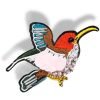 Applicazione raffigurante una Cicogna, realizzata con file di corallini, paillettes ricamate e pietre.