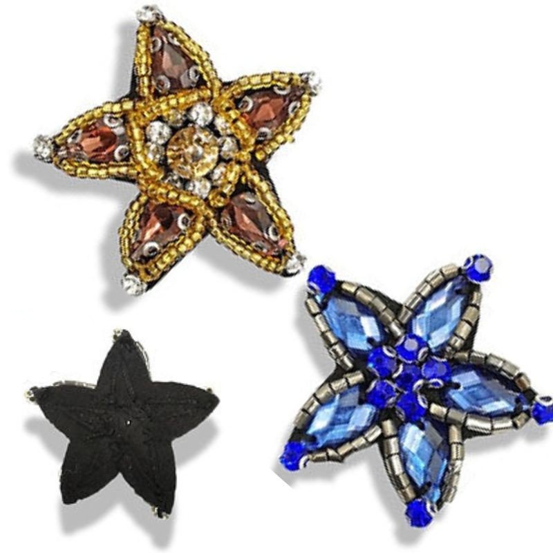 Applicazione raffigurante una Stella, realizzata con pietre ricamate a mano e castonate singolarmente e con file di corallini che ne delineano i particolari e i bordi, su base di tessuto panno lenci.