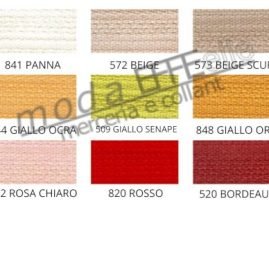 | Colore | 520 bordeaux, 573 beige scuro, 848 giallo oro, 007 nocciola, 070 rosa antico, 078 verde militare, 501 bianco, 509 giallo senape, 512 rosa chiaro, 560 blu, 570 marrone, 572 beige, 580 nero, 820 rosso, 841 panna, 844 giallo ocra |