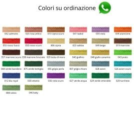 | Colore | 002 rosa baby, 003 celeste, 004 giallo, 005 giallo ocra, 006 panna, 008 grigio medio, 009 grigio scuro, 011 rosso, 014 blu chiaro, 015 bordeaux, 016 blu scuro, 017 verde loden, 018 senape, 022 crema, 026 giallo oro, 034 fucsia, 051 oliva, 054 seta, 516 bordeaux chiaro, 542 militare, 600 tortora, 807 acqua marina, Bianco, Nero |