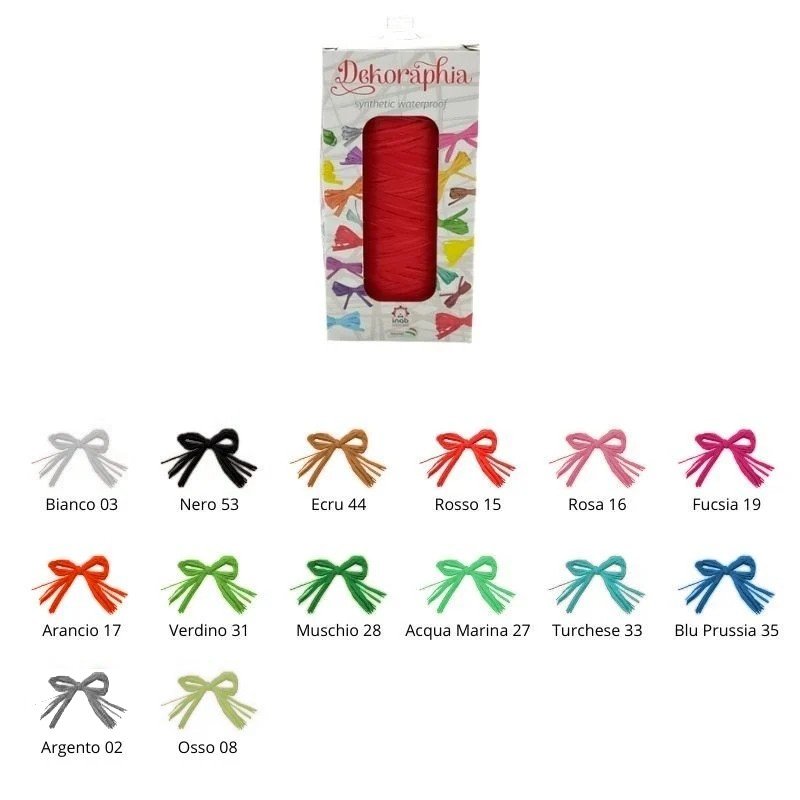 Filo in rafia colorata sintetica per lavori a uncinetto, per realizzare borse e altro o semplicemente per decorare pacchi regalo, il prezzo è riferito al rotolo da 200 metri (195 grammi).