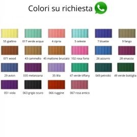 | Colore | 001 bianco, 002 rosa, 011 grigio chiaro, 013 grigio medio, 018 fuxia, 019 rosso, 020 bordò, 021 marrone, 023 nero, 031 beige, 032 verde militare, 039 beige scuro, 046 arancione, 050 blu notte, 058 verde, 065 giallo sole, 068 beige scuro |