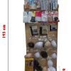 Pratico espositore in legno per negozio con rotelle che ne facilitano lo spastamento, assortimento inerente a calzini da uomo donna e bambino primaverili e estive. Misure dell espositore H 193 cm Profodo 33+33 cm(fronte retro) L 60 cm