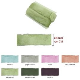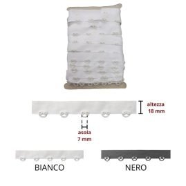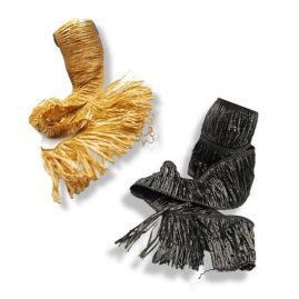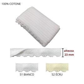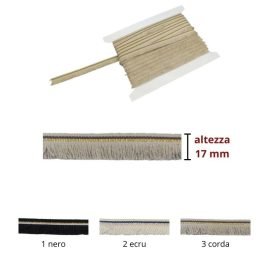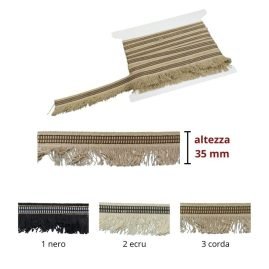 Frangia laminata con lavorazione tripolino, altezza mm 30, composizione 66% cotone, 24% acetato, 6% poliestere, 4% poliammide. Prezzo riferito a pezza da 20 metri