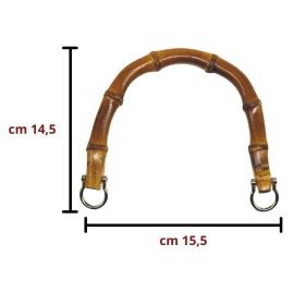 Coppia di manici per borsa in bamboo con ganci ad anello in metallo, cm 14,5 x 15,5