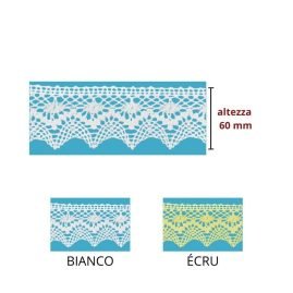 Pizzo fusello in 100% cotone, prodotto di alta qualità dimensione h mm 60. Prezzo riferito a pezza da 10 metri (taglio continuo a 10 metri)