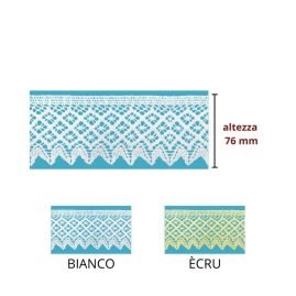Pizzo fusello in 100% cotone, prodotto di alta qualità dimensione h mm 76. Prezzo riferito a pezza da 10 metri (taglio continuo a 10 metri)