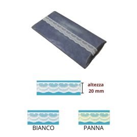 Bordo pizzo e merletto in materiale nylon (poliestere 100%) alto cm 2 non elastico. Prezzo riferito a confezione da 20 metri