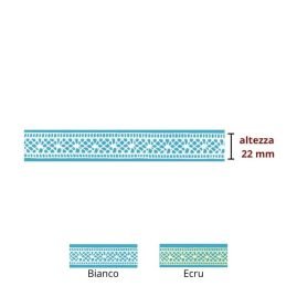 Pizzo tramezzo in 100% cotone, prodotto di alta qualità dimensione mm 22. Prezzo a pezza da 20 metri