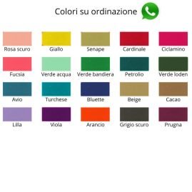 | Colore | bordeaux, Cammello, greggio, grigio medio, Bianco, Blu, Celeste, grigio chiaro, Marroncino, marrone, Nero, Rosa antico, Rosa chiaro, Rosso chiaro, rosso scuro, Testa di moro, Verde marcio, Verdone |