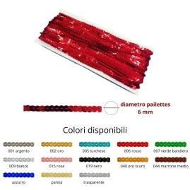 Filo di paillettes piatta da cucire, diametro mm 6, ideale per abbellire capi di abbigliamento e qualunque accessorio di abbigliamento.prezzo a pezza da 20 metri