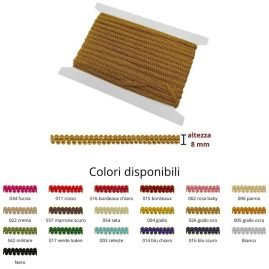Agremano, gallone intrecciato (50% acrilico e 50% cotone) indicata per arredo tessile casa, lavoretti in genere, abbigliamneto e accessori, dimensione mm 8. Prezzo a confezione da 20 metri