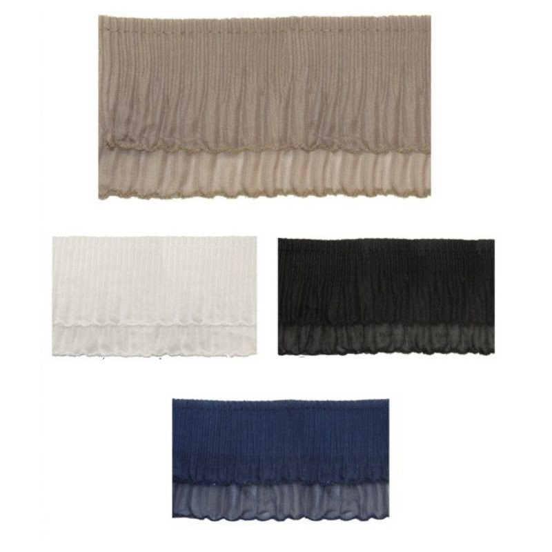 Passamaneria in organza plissettata con doppia balza composizione: 100% poliestere, per allungare ed abbellire abiti.Altezza cm 7