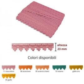 Passamaneria 100% viscosa ideale per ornare abiti o complementi d’arredo, altezza 23 mm, prezzo riferito a metro.