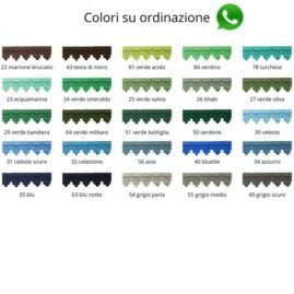 | Colore | 05 giallo, 08 arancione, 11 rosa antico, 118 vede, 70 ottanio, 85 arancio chiaro, giallo oro, Nero, Panna |