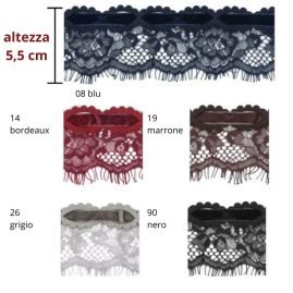 Passameria moda donna in pizzo e bordo velluto, utile per allungare e abbellire abiti da donna. Altezza cm 5,5. Prezzo riferito a confezione da 5 metri