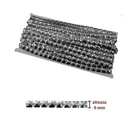 Passameria moda donna in plastica effetto metallo e stras, utile per abbellire abiti da donna e accessori abbigliamento. Altezza mm 9. Prezzo riferito a confezione da 9,15 metri