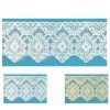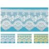 Pizzo ricamato su tulle, in materiale 100% poliestere, utilizabile per abbigliamento o arredo tessile casa (tende, centrini, vetrinette ecc), altezza cm 10.Prezzo a pezza da 10 metri (taglio continuo a 10 metri).