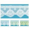 Pizzo ricamato su tulle, in materiale 100% poliestere, utilizabile per abbigliamento o arredo tessile casa (tende, centrini, vetrinette ecc), altezza cm 6,5. Prezzo a pezza da 10 metri (taglio continuo a 10 metri).