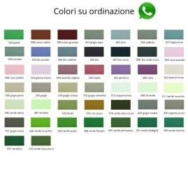 | Colore | 002 nero, 039 arancione, 089 blu notte, 545 rosa chiaro, 575 cremisi, 909 bianco seta, 001 bianco, 013 giallo canarino, 546 rosa, 690 verde salvia |