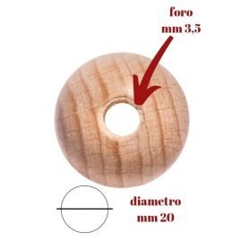 Perla sferica in legno naturale, 20 mm di diametro e foro di 3,5 mm.